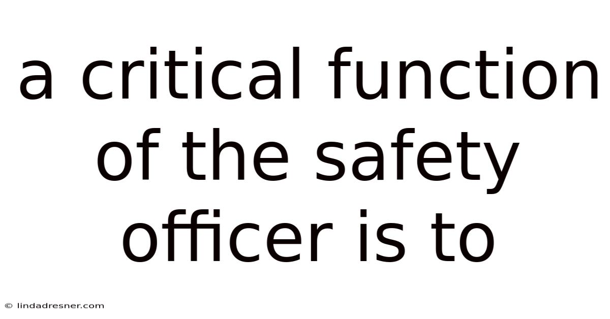 A Critical Function of the Safety Officer Is to Protect Workers and Ensure Workplace Safety