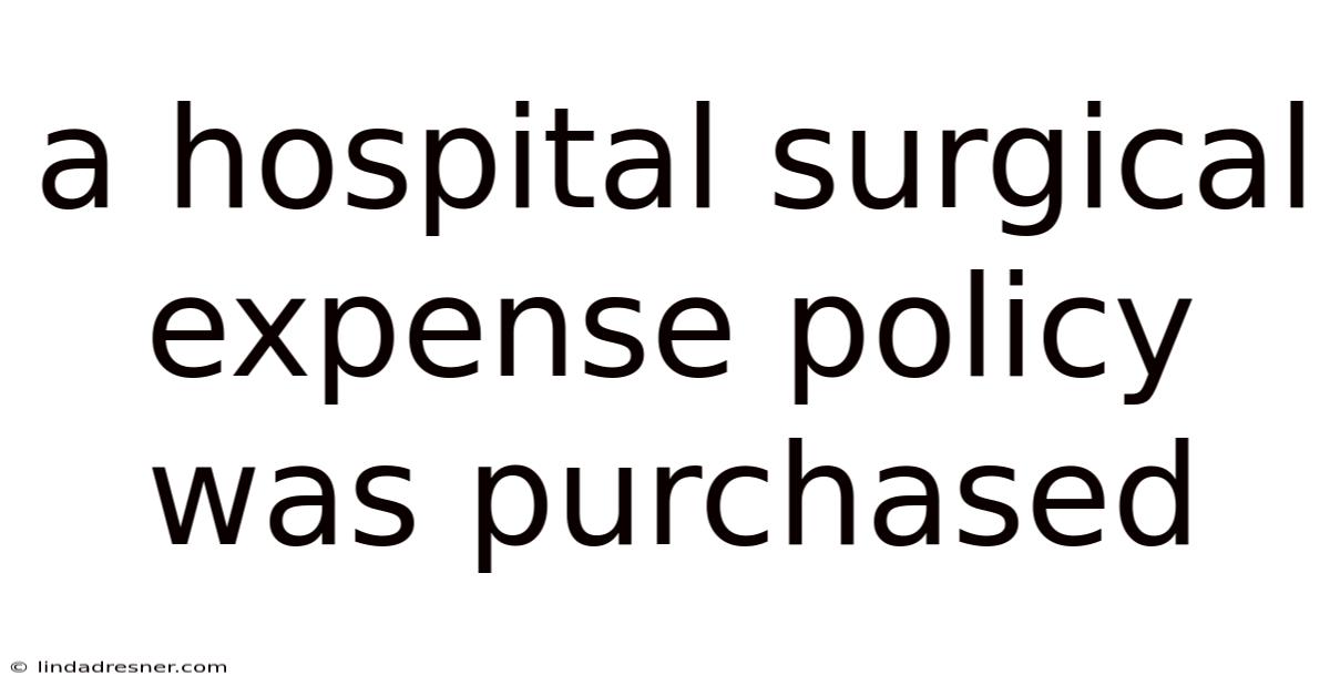 Purchasing a hospital surgical expense policy is a significant and proactive step toward securing your financial health and peace of mind. Consider this: this targeted coverage acts as a crucial supplement, helping to manage the often-substantial out-of-pocket expenses that can arise even with a base health insurance policy. Also, unlike a comprehensive health insurance plan that covers a wide range of medical needs—from routine doctor visits to chronic condition management—a surgical expense policy is a specialized form of insurance designed with one primary goal: to provide a dedicated financial safety net specifically for the costs associated with surgical procedures. When you purchase such a policy, you are not just buying a document; you are investing in a financial shield that protects your savings from being depleted by surgical bills, allowing you to focus on recovery rather than financial stress That's the part that actually makes a difference. But it adds up..