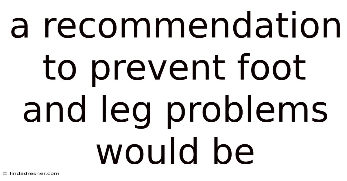 A Recommendation to Prevent Foot and Leg Problems