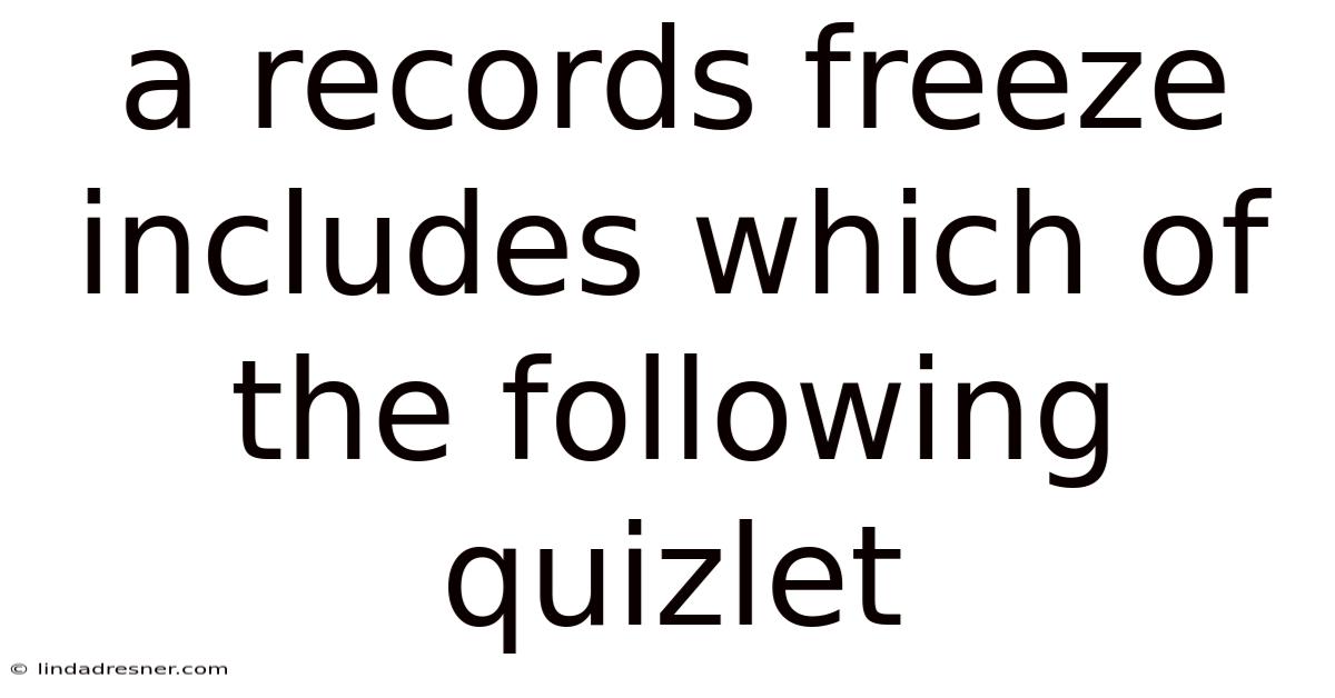 In the context of a Quizlet question, a records freeze might be presented as a multiple-choice or true/false question. As an example, a question might ask, “Which of the following is included in a records freeze?Think about it: ” The correct answer would depend on the specific elements defined in the legal framework or the context of the question. Understanding the components of a records freeze is key to answering such questions correctly It's one of those things that adds up..