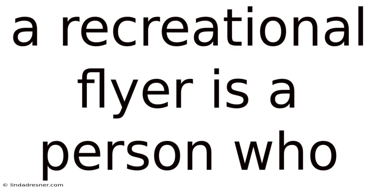 Arecreational flyer is a person who engages in the activity of flying for leisure, adventure, or personal fulfillment. Which means this term typically refers to individuals who participate in various forms of recreational aviation, such as skydiving, paragliding, hang gliding, or even drone flying, depending on the context. Worth adding: unlike professional pilots or commercial aviators, recreational flyers do not pursue flying as a career but instead seek the thrill, freedom, and unique experiences that come with being in the air. The concept of a recreational flyer is rooted in the human desire to explore new horizons, challenge oneself, and connect with the environment in a way that is both exhilarating and rewarding.
