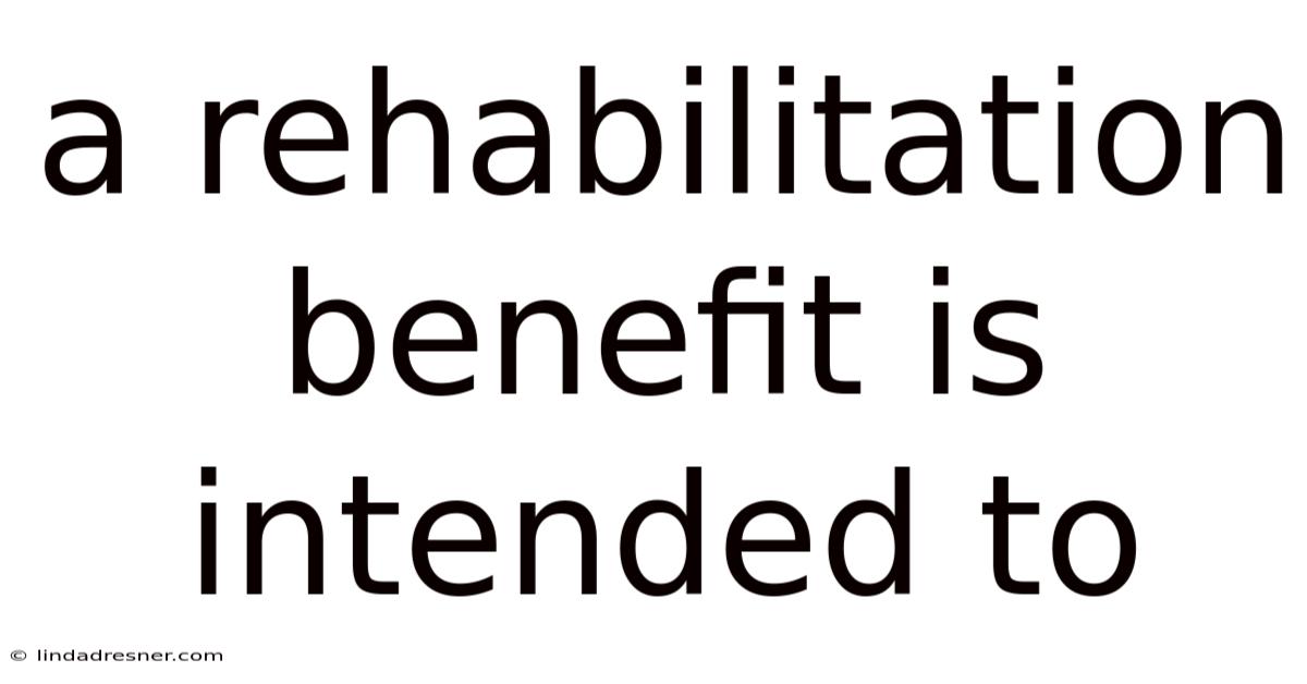 Rehabilitation Benefits Are Intended To Restore Functionality And Improve Quality Of Life