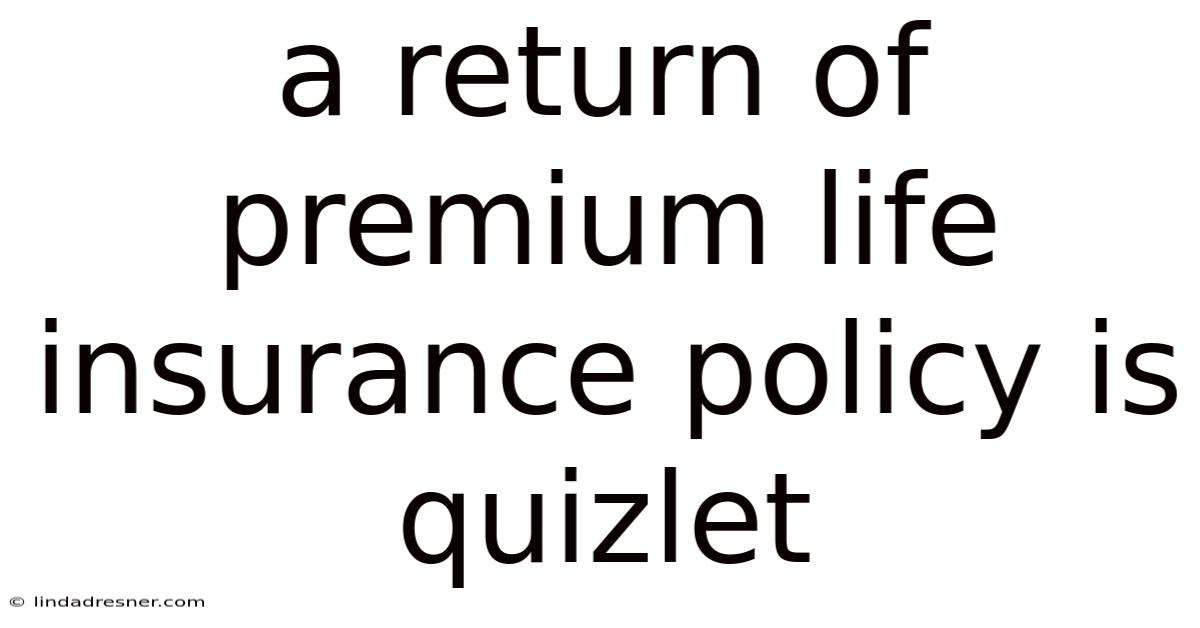 A Return Of Premium Life Insurance Policy Is Quizlet