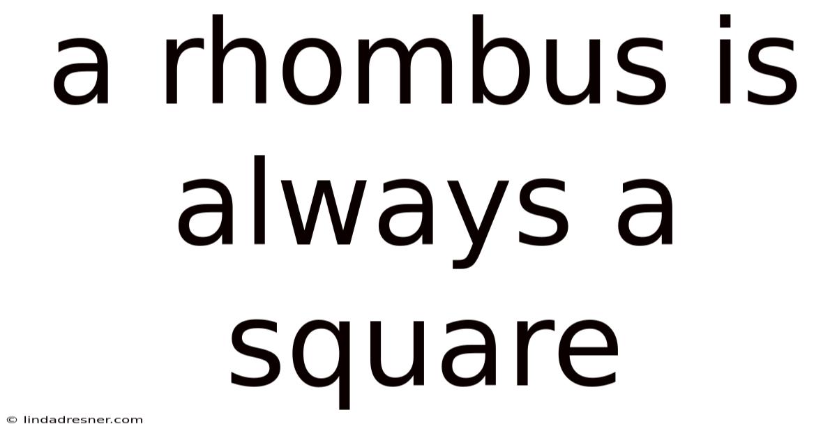 The concept of geometric shapes often serves as a foundation for understanding spatial relationships, yet few relationships defy expectations like the one between a rhombus and a square. In practice, at first glance, these figures may appear distinct—one defined by four equal sides while the other by four equal angles—yet they share an intrinsic connection that challenges conventional perceptions. Here's the thing — this article looks at the involved relationship between these two shapes, exploring how the rigid structure of a square inherently encapsulates the properties of a rhombus. Through rigorous analysis, mathematical precision, and practical applications, we uncover why the assertion that a rhombus is always a square holds true, revealing the deeper principles that bind them together. Such insights not only clarify geometric truths but also underscore the importance of precision in mathematical discourse, ensuring clarity for both novice learners and seasoned scholars alike The details matter here..