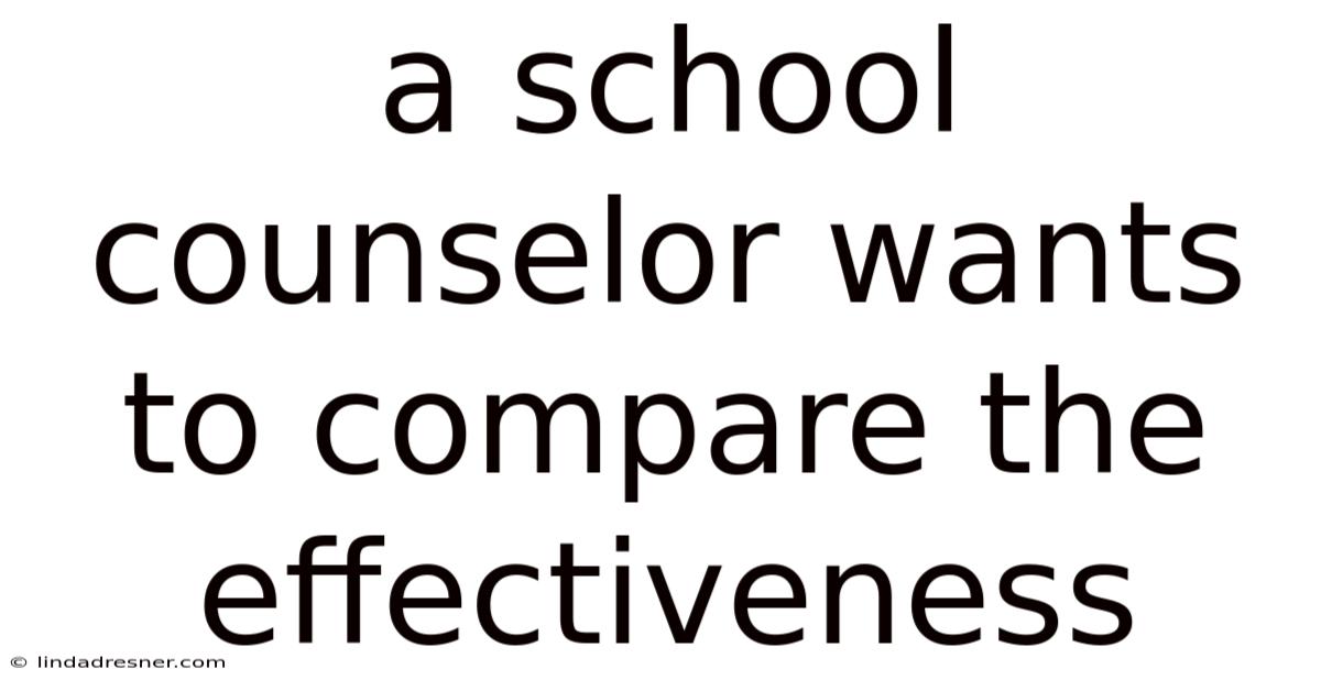 A School Counselor Wants to Compare the Effectiveness of Different Counseling Approaches: A thorough look