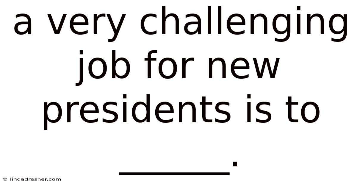 A Very Challenging Job For New Presidents Is To ______.