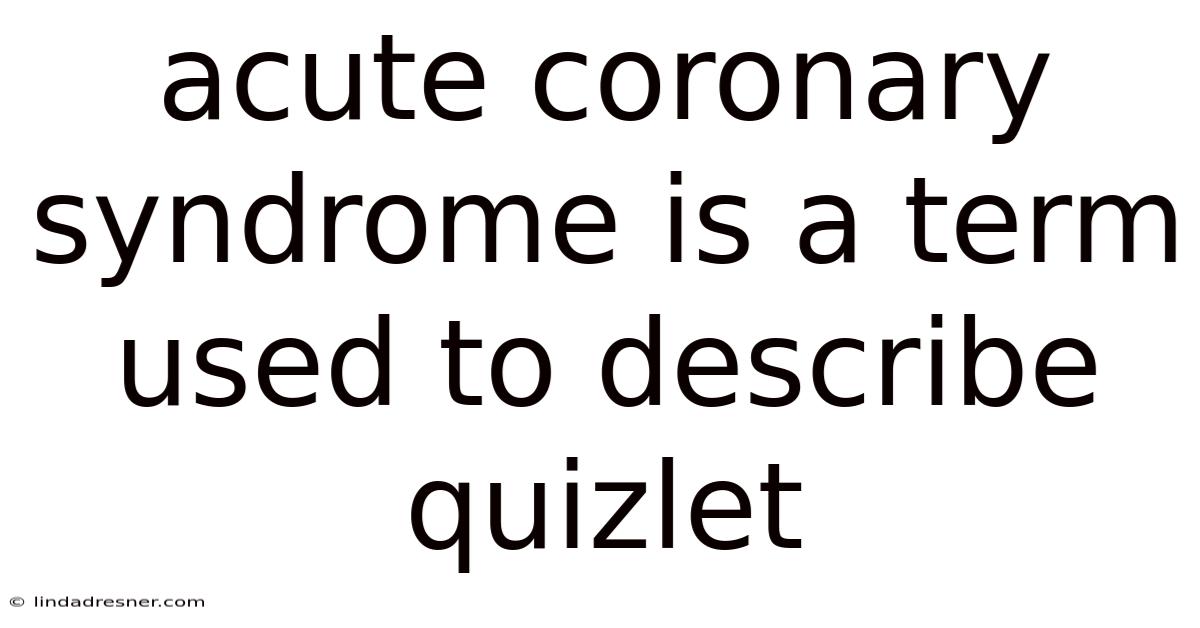 Acute Coronary Syndrome Is a Term Used to Describe Quizlet: Understanding the Critical Condition