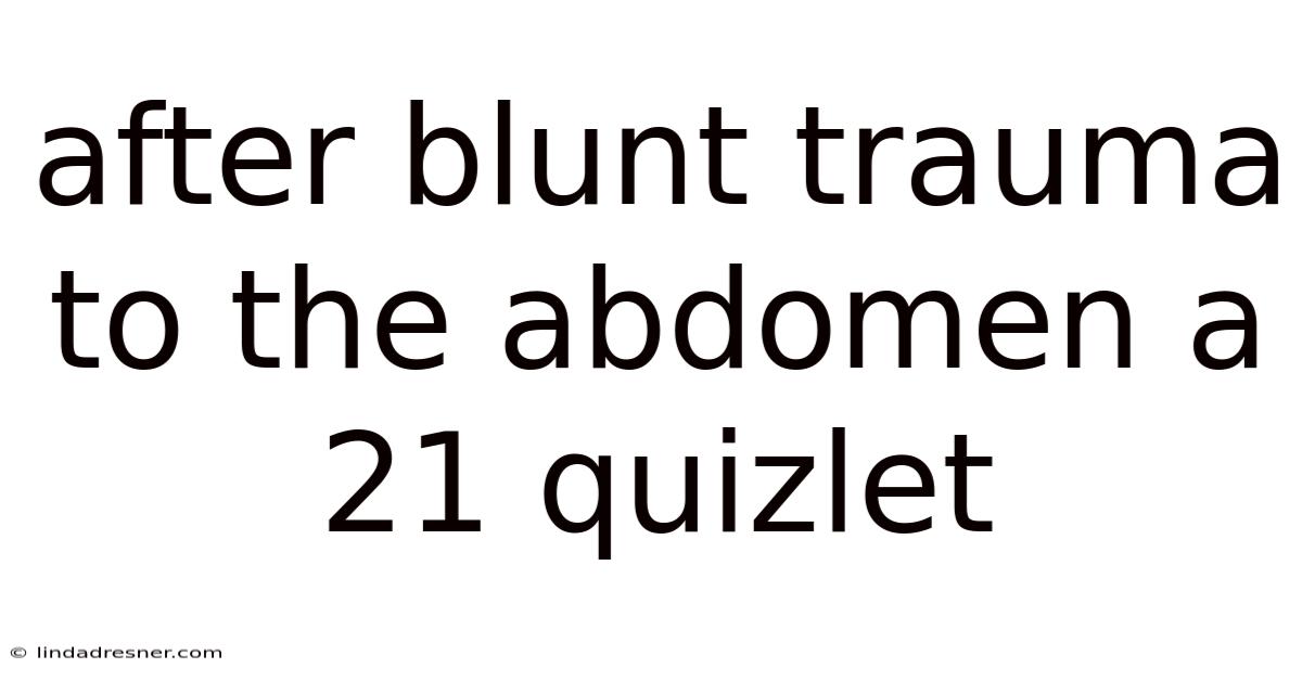 After blunt trauma to the abdomen a 21 quizlet serves as a critical study tool for medical students and healthcare professionals seeking to master the complex assessment and management of abdominal injuries. Abdominal trauma is a high-stakes medical scenario where rapid identification, accurate diagnosis, and timely intervention can mean the difference between life and death. This full breakdown digs into the mechanisms, clinical presentations, diagnostic approaches, and management strategies associated with blunt abdominal trauma, providing a thorough understanding necessary for effective emergency response and long-term patient care Surprisingly effective..