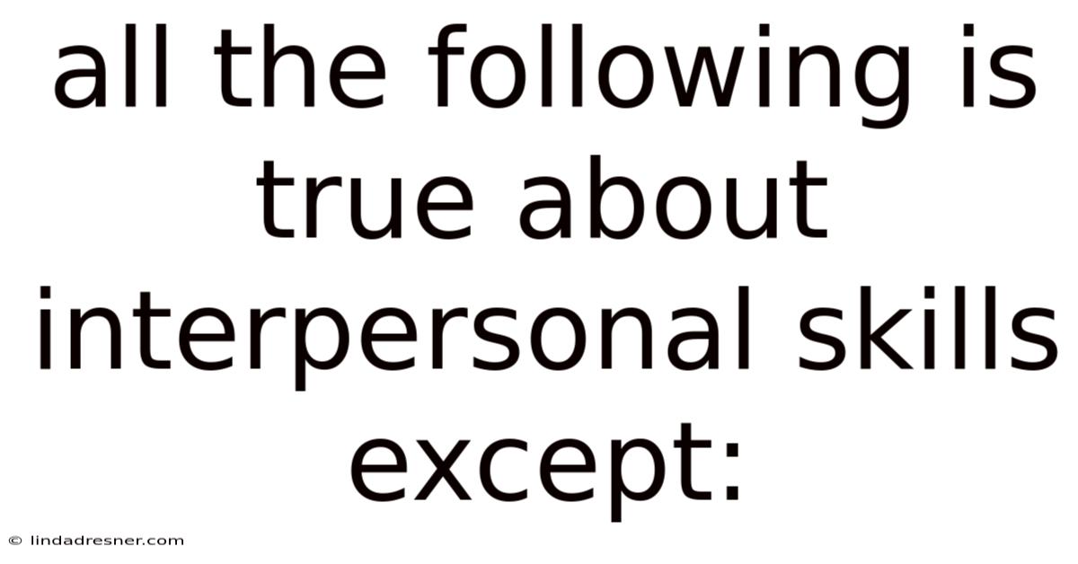 All the Following is True About Interpersonal Skills Except