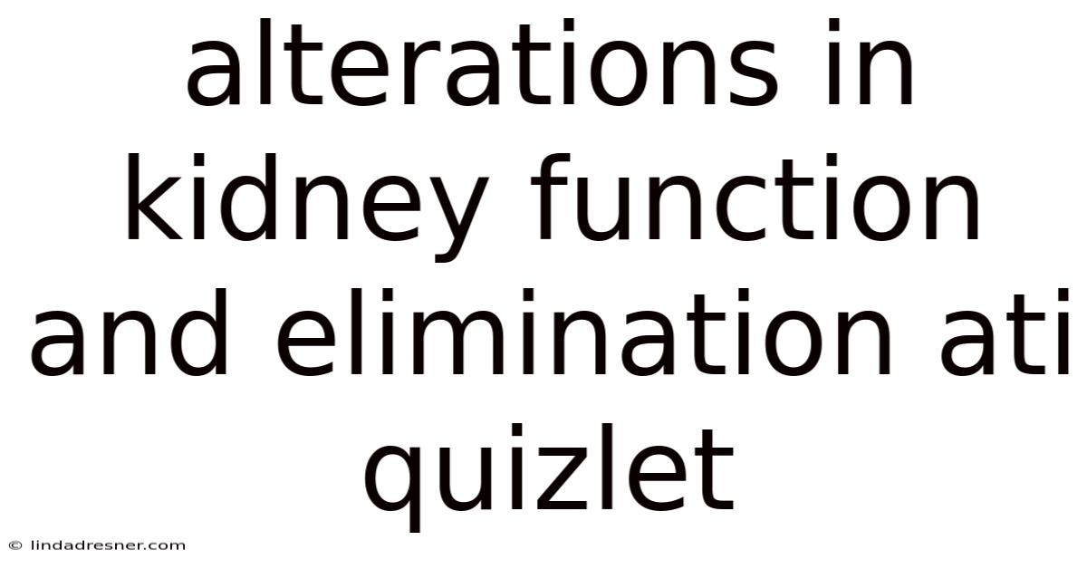 Renal function refers to the kidneys' ability to filter blood, regulate blood volume and pressure, maintain electrolyte and acid-base balance, and produce essential hormones. For students and healthcare providers utilizing resources like ATI Quizlet, a thorough grasp of these concepts is fundamental to effective patient care and academic success. In practice, this article explores the mechanisms behind these changes, their common causes, clinical manifestations, diagnostic approaches, and management strategies. So naturally, alterations in these processes, collectively termed renal dysfunction or kidney failure, represent a critical alteration in elimination and homeostasis. Understanding how disruptions in filtration, secretion, and reabsorption lead to clinical symptoms provides the foundation for recognizing and addressing renal impairment Which is the point..