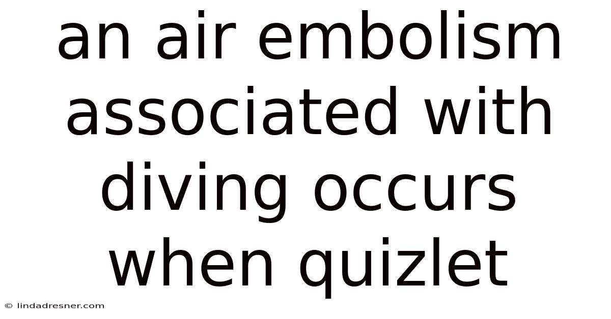 The vast expanse of the ocean offers a realm of natural beauty and profound challenges, yet for those who dare to venture its depths, the risks often overshadow the allure of exploration. Among the most perilous spectacles of underwater life are air embolisms—a medical phenomenon that demands immediate attention and meticulous prevention. On the flip side, these tiny air pockets, formed when dissolved gases like nitrogen or oxygen escape into the bloodstream during prolonged submersion, can escalate into life-threatening conditions if unchecked. While air embolisms may initially appear innocuous, their consequences unfold insidiously, threatening to disrupt circulation, trigger seizures, or even lead to cardiac arrest. For divers, instructors, or even recreational swimmers, understanding this condition is essential not merely for safety but for the preservation of life itself. In the context of diving, where physical exertion, pressure, and environmental factors converge, air embolisms emerge as a critical concern. They act as silent infiltrants, sneaking silently through the body’s delicate systems to compromise oxygen delivery and physiological balance. Recognizing the signs early—such as dizziness, shortness of breath, or nausea—is the first line of defense, while proactive measures make sure even the most experienced practitioners are equipped to respond effectively. This article walks through the intricacies of air embolism associated with diving, exploring its pathophysiology, prevention strategies, and the central role of educational tools like Quizlet in fostering awareness. By bridging the gap between theoretical knowledge and practical application, we aim to empower individuals to safeguard their well-being in aquatic environments, transforming potential hazards into manageable risks. Through this exploration, we uncover how knowledge becomes a lifeline, turning the threat into a manageable challenge and ensuring that the pursuit of underwater adventure remains a journey of caution and care rather than peril Not complicated — just consistent..