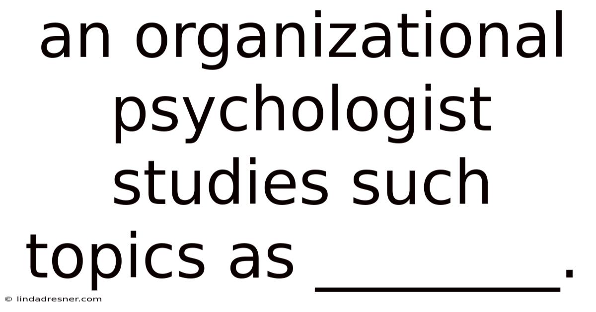 An Organizational PsychologistStudies Such Topics as Understanding Human Behavior in the Workplace