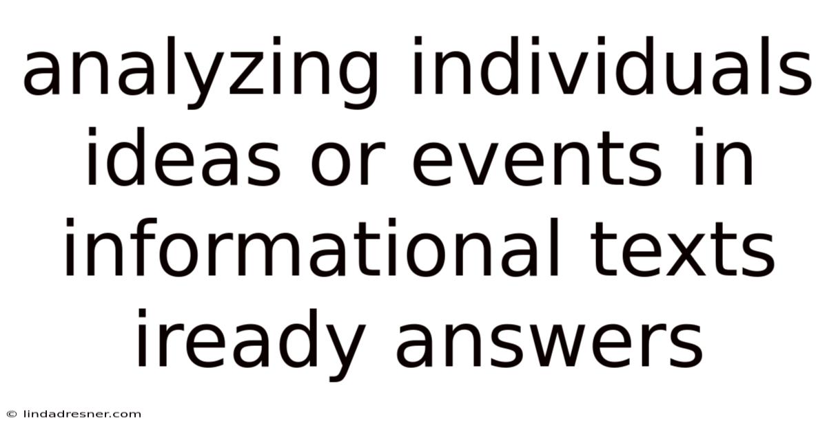 Analyzing individuals, ideas, and events in informational texts is a skill that will serve you throughout your academic career and beyond. By learning to look beyond the surface of what you read—to consider who is portrayed, what ideas are presented, and why events matter—you become a more thoughtful, engaged reader But it adds up..