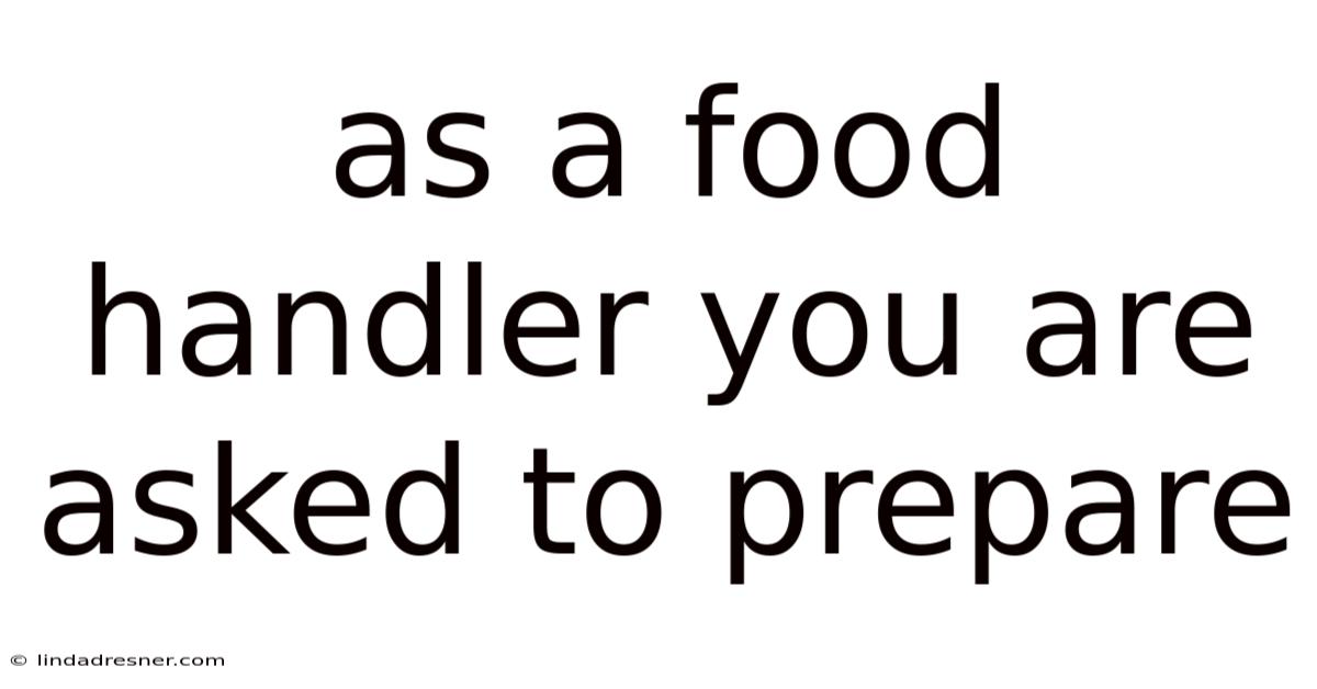 As A Food Handler You Are Asked To Prepare