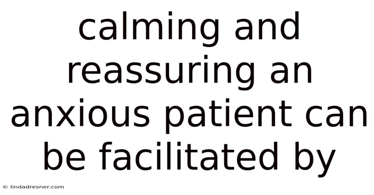 Calming and reassuring an anxious patient can be facilitated by effective communication, environment management, and evidence‑based therapeutic techniques. That said, anxiety is a common companion to medical encounters, and the way healthcare professionals respond can dramatically influence patient outcomes, adherence to treatment, and overall satisfaction. This article explores the core strategies that enable clinicians to create a soothing atmosphere, the psychological mechanisms behind each approach, and practical steps to implement them in everyday practice The details matter here..
