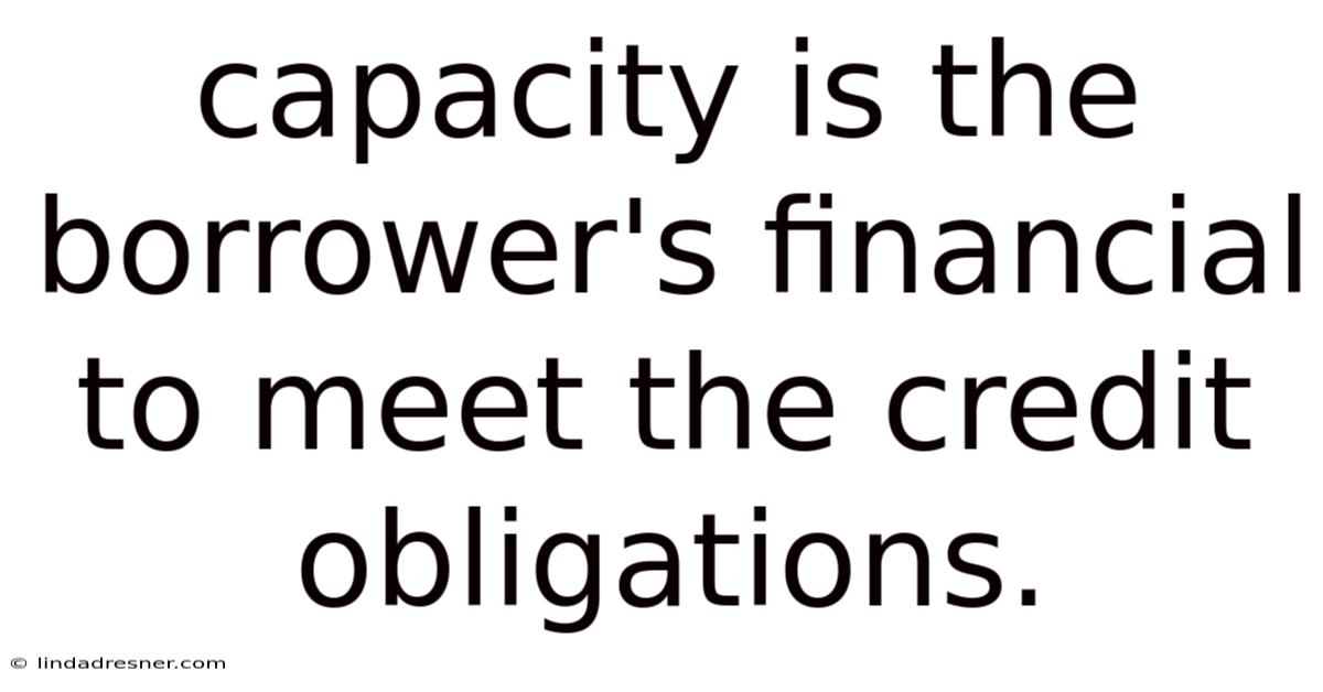 Capacity is the financial backbone of creditworthiness, reflecting a borrower's ability to manage and repay debt responsibly. By understanding the components that shape capacity—income, expenses, DTI, and stability—individuals can take proactive steps to strengthen their financial profile. Whether through increasing income, reducing debt, or optimizing expenses, improving capacity not only enhances borrowing potential but also fosters long-term financial resilience. Practically speaking, for lenders, assessing capacity ensures that credit is extended to those most likely to repay, creating a balanced and sustainable lending environment. The bottom line: a strong capacity is not just about qualifying for loans; it’s about building a foundation for enduring financial health The details matter here..