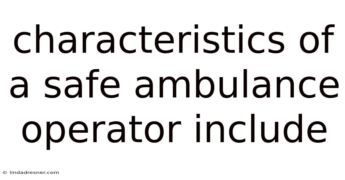 Characteristics Of A Safe Ambulance Operator Include