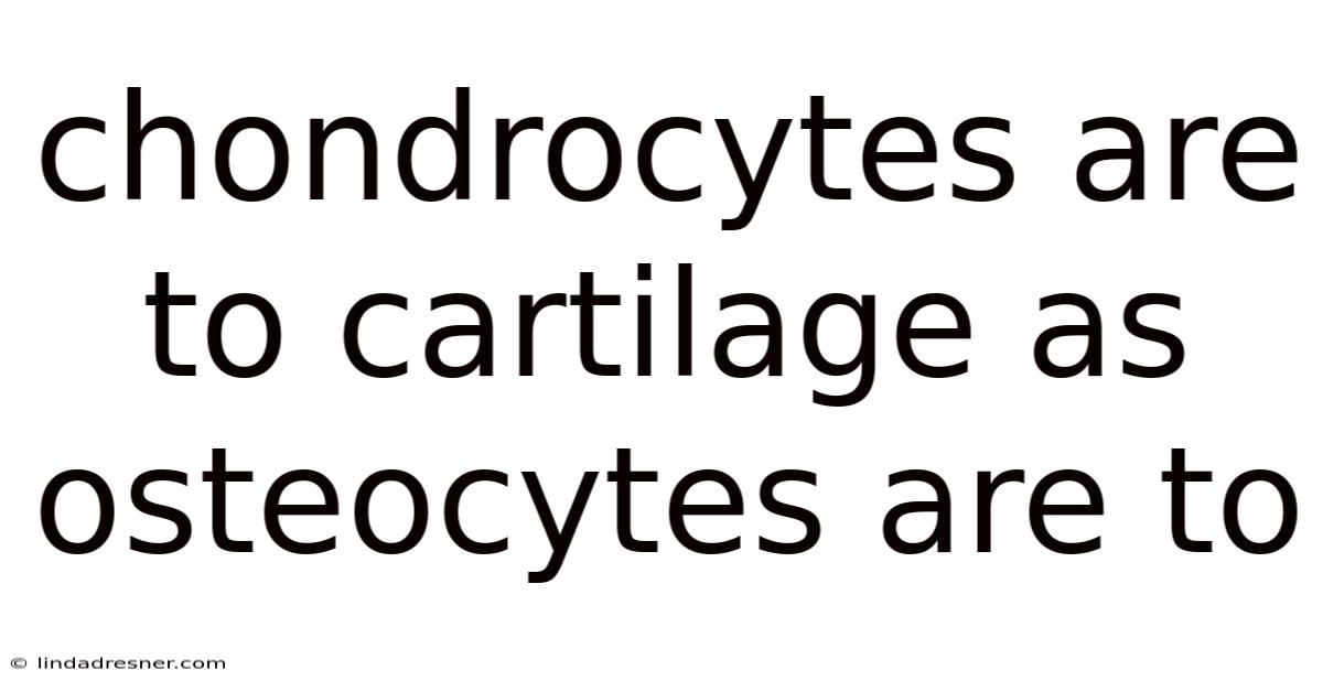 Chondrocytes are to Cartilage as Osteocytes are to Bone