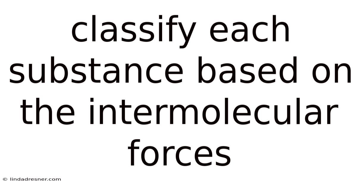 The nuanced dance of particles within a substance shapes its very essence, dictating how it interacts with its environment and other matter. At the heart of this dynamic lies the concept of intermolecular forces—the weak yet pervasive attractions that govern the behavior of substances at the molecular level. In real terms, these forces, ranging from the electrostatic pull of ions to the transient attractions between polar molecules, act as the invisible scaffolding upon which the structure of matter is built. So whether a compound melts at a certain temperature or dissolves in water, its classification hinges on these forces, revealing profound insights into its fundamental nature. Understanding this relationship requires a nuanced exploration of how different types of interactions determine properties such as viscosity, surface tension, and thermal stability. In this comprehensive examination, we will walk through the classification of substances based on their intermolecular forces, uncovering the principles that underpin the diversity of materials encountered in both everyday life and advanced scientific disciplines. So such knowledge not only enriches our comprehension of chemistry but also empowers practitioners to innovate effectively within their fields. The implications extend beyond academia, influencing industries ranging from agriculture to manufacturing, where material selection is critical to achieving desired outcomes. Still, as we traverse this journey, we will uncover how these forces act as the silent architects of substance behavior, shaping everything from the texture of a smartphone screen to the resilience of biological tissues. But this article aims to illuminate the symbiotic relationship between intermolecular forces and classification, offering readers a framework to analyze and categorize substances with precision and clarity. By examining each force in isolation and its collective impact, we can discern patterns that define the character of matter itself, bridging the gap between abstract theory and practical application. The subsequent sections will further elaborate on how these forces interplay within specific categories, providing a holistic understanding that transcends mere categorization into tangible categories.