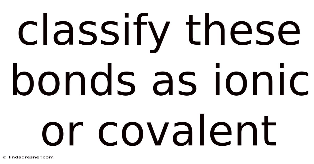 Mastering the classification of chemical bonds as ionic or covalent requires understanding the underlying principles of electronegativity, electron transfer, and atomic structure. Remember that chemistry often exists in shades of gray rather than black and white, and many bonds exhibit characteristics of both categories. By applying the systematic approach outlined in this guide—considering electronegativity differences, elemental types, and physical properties—you can confidently categorize any bond you encounter. The key is to use multiple criteria to arrive at the most accurate classification for your specific context, whether you're solving textbook problems or analyzing real-world chemical phenomena.
