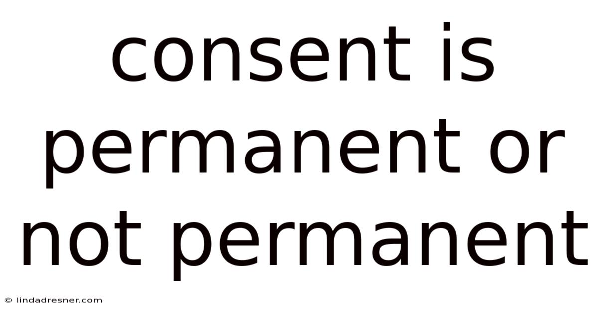Consent is often described as the voluntary agreement to participate in an activity or allow something to happen. Think about it: it is a cornerstone of ethical behavior, particularly in areas such as healthcare, sexual relationships, and legal contracts. That said, the permanence of consent is not a straightforward issue. That said, in some situations, consent is considered ongoing and can be revoked at any time, while in others, it may be viewed as a one-time agreement. This article explores the nuances of consent, its permanence, and the factors that influence its validity over time Simple as that..