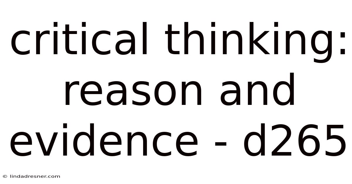 Critical Thinking: Reason and Evidence - D265