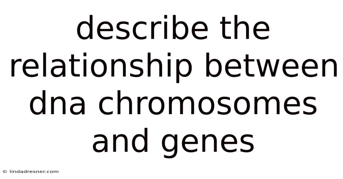 The relationship between DNA, chromosomes, and genes is interdependent. DNA provides the raw material, chromosomes organize this material into a functional structure, and genes are the specific units within DNA that perform biological functions.