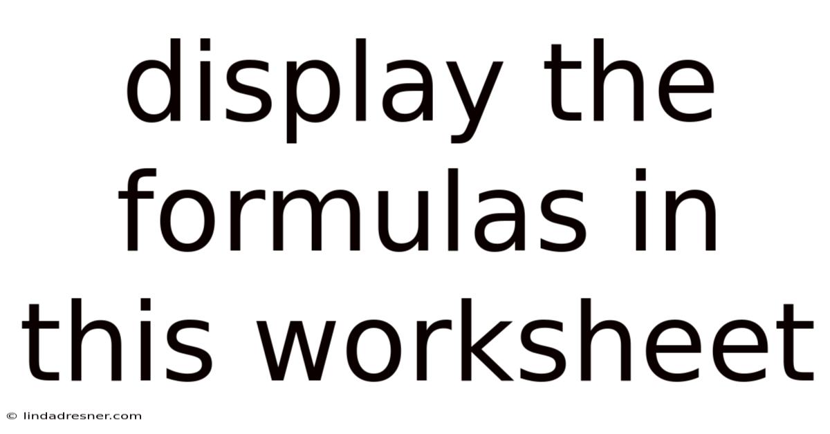 Displaythe formulas in this worksheet is a critical skill for anyone working with spreadsheets, whether for data analysis, financial modeling, or academic purposes. Formulas are the backbone of spreadsheet functionality, enabling users to perform calculations, automate tasks, and derive insights from raw data. Even so, understanding how to display the formulas in this worksheet ensures transparency, accuracy, and ease of troubleshooting. This article will guide you through the process of revealing formulas, explain their importance, and provide practical steps to master this feature across popular spreadsheet tools like Excel and Google Sheets The details matter here..