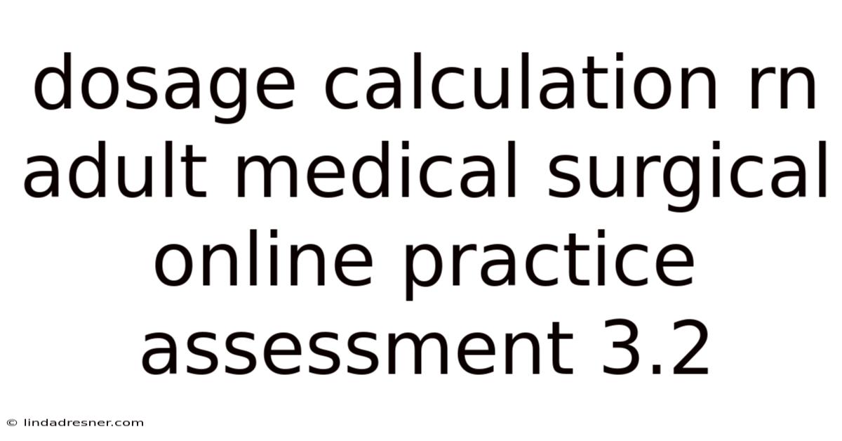 Success in the RN Adult Medical-Surgical online practice assessment, particularly sections focusing on dosage calculation, is not merely about passing a test—it is a fundamental pillar of patient safety and clinical competence. Still, this assessment, often a critical milestone in nursing education and licensure preparation, rigorously evaluates your ability to perform accurate medication calculations in high-stakes, adult care scenarios. In practice, for many, the "3. 2" designation signifies a specific module or version targeting complex, real-world applications beyond basic conversions. This article serves as your complete walkthrough, transforming anxiety into assurance by demystifying the processes, highlighting common pitfalls, and providing actionable strategies to conquer this essential component of your nursing journey.