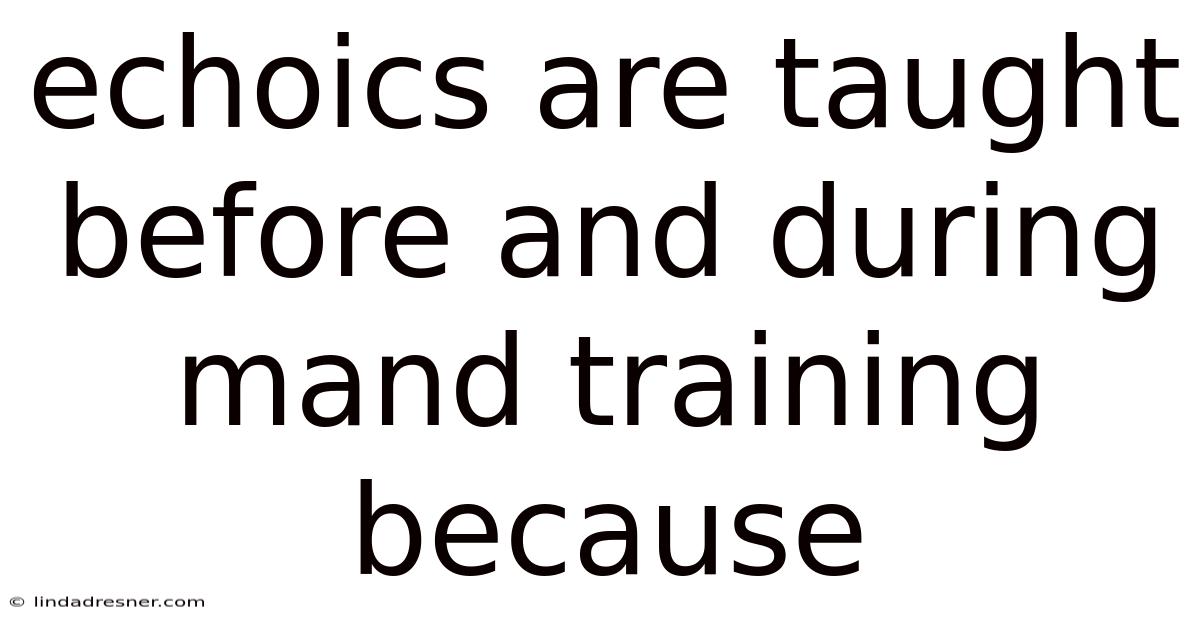 Echoics are taught before and during mand training because they serve as a foundational skill that supports the development of functional communication. In Applied Behavior Analysis (ABA), echoics refer to the ability to repeat or imitate spoken words or phrases, which is a critical precursor to more complex language skills like requesting (mands). Teaching echoics early in language training helps learners build the necessary verbal repertoire to communicate effectively But it adds up..