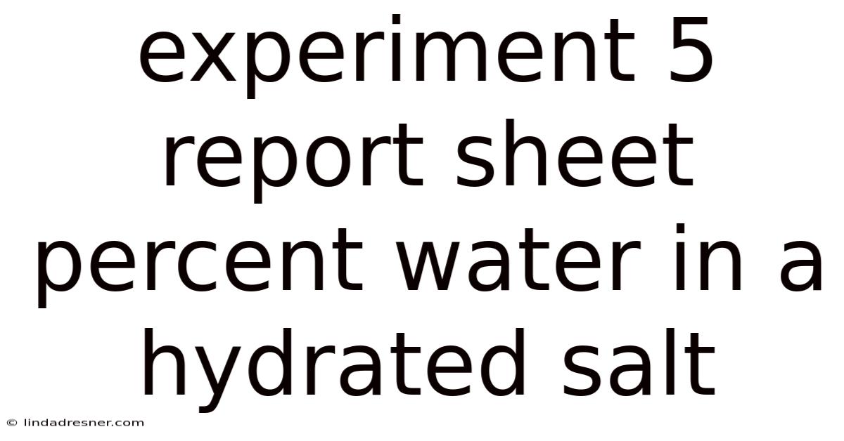 Experiment 5 Report Sheet: Percent Water in a Hydrated Salt