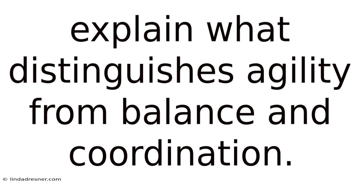 Understanding the distinct yet interconnected roles of agility, balance, and coordination is fundamental to appreciating the complexity of human movement. Coordination is the harmonious integration of eye, hand, foot, and body movements to perform a task smoothly and accurately. Consider this: Agility is the ability to change the body’s position rapidly and with precision, typically in response to a stimulus. Also, while often used interchangeably in casual conversation, these three components of motor fitness represent unique neurological and physical capabilities. Now, Balance is the capacity to maintain the body’s center of gravity over its base of support, whether stationary or in motion. Distinguishing agility from balance and coordination is essential for athletes, rehabilitation specialists, coaches, and anyone looking to optimize physical performance or daily function That's the part that actually makes a difference. No workaround needed..