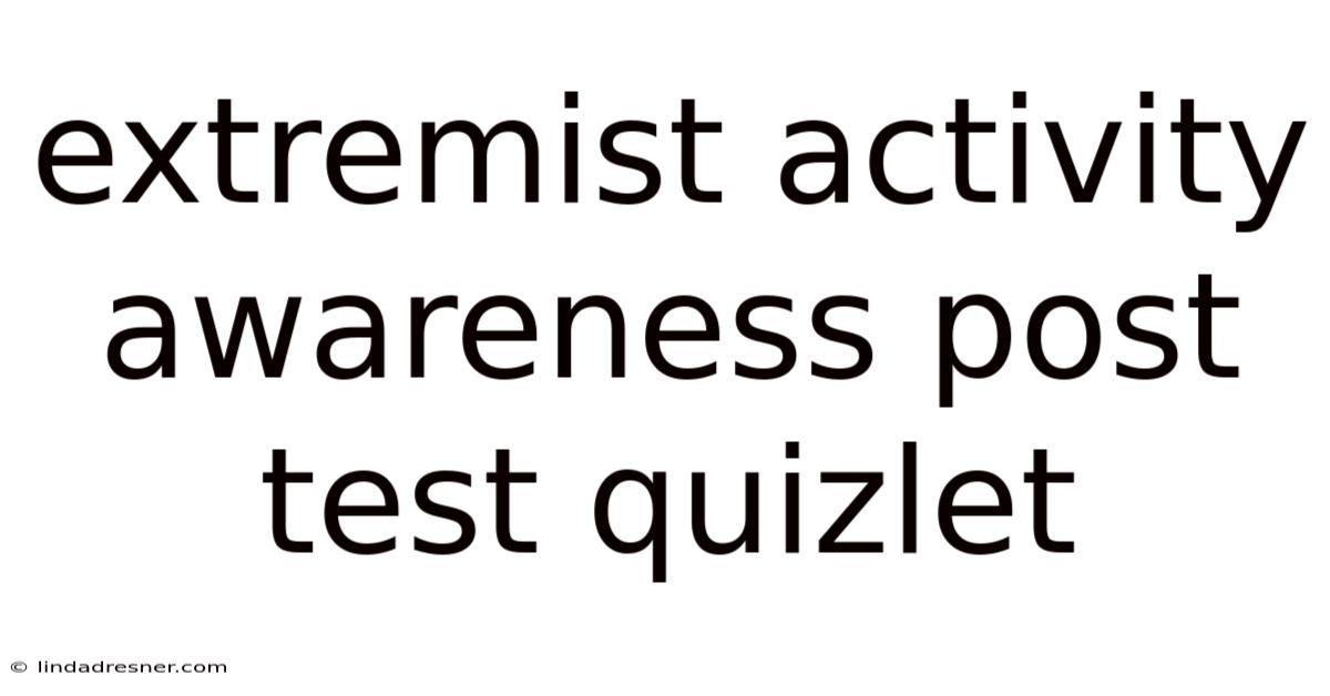 Understanding extremist activity awareness is crucial in today’s rapidly changing world. As societies become more interconnected, the potential for harmful ideologies to spread grows. This article gets into the importance of awareness, provides practical steps, and offers a quizlet to reinforce key concepts. Think about it: recognizing the signs of extremist activity can empower individuals to take action and protect themselves and their communities. By learning how to identify extremist behavior, you become a vital part of safeguarding your environment But it adds up..