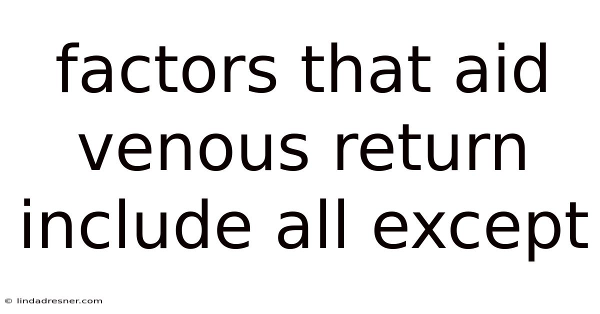 Factors that aid venous return include all except the influence of ambient temperature, a common misconception that will be clarified later. Understanding which physiological mechanisms promote the flow of blood from the systemic circulation back to the heart is fundamental for students of physiology, clinicians managing circulatory disorders, and anyone interested in optimizing cardiovascular performance. This article dissects the key determinants of venous return, explains how each operates, and identifies the one factor that does not contribute to the process. By the end, readers will be equipped to distinguish genuine contributors from distractors, a skill that enhances both academic insight and practical application Worth knowing..
