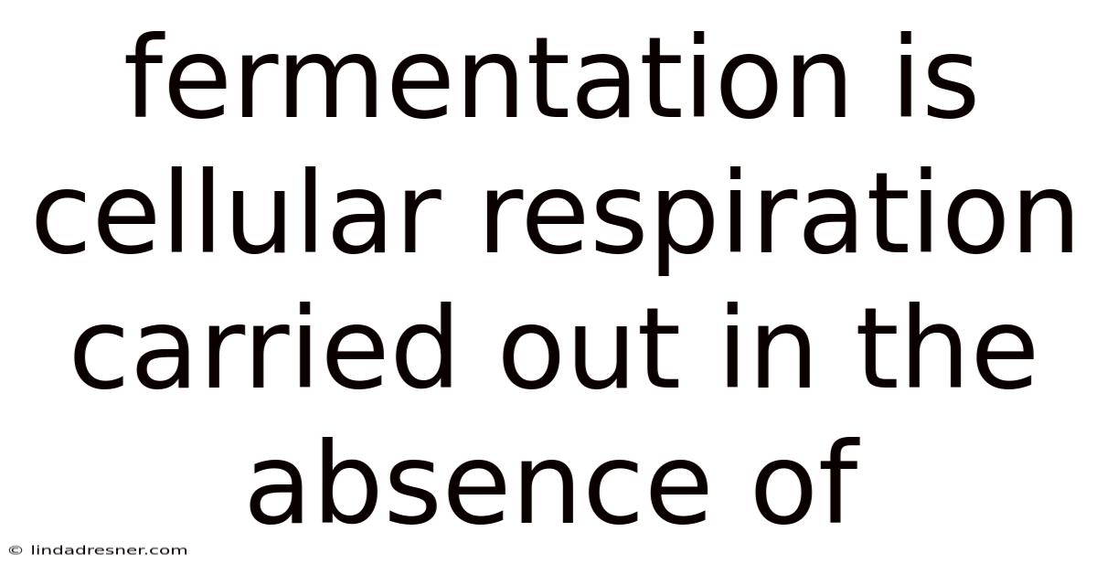 Fermentation Is Cellular Respiration Carried Out in the Absence of Oxygen