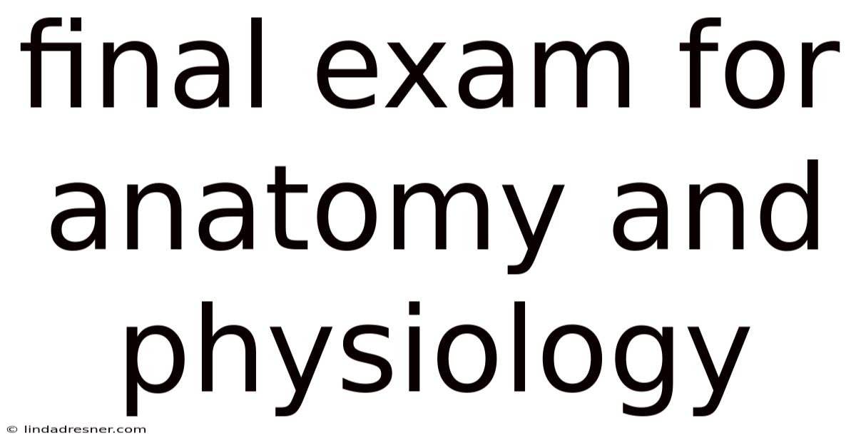 The final exam in anatomy and physiology is a comprehensive test of your ability to synthesize vast amounts of information and apply it to real‑world scenarios. And by systematically mapping the exam blueprint, consolidating core concepts, employing active review techniques, integrating clinical correlations, and following a structured revision schedule, you’ll be well‑prepared to tackle any question that comes your way. In real terms, remember, consistency beats cramming, and understanding beats rote memorization. Good luck, and approach the exam with confidence—you’ve earned it.