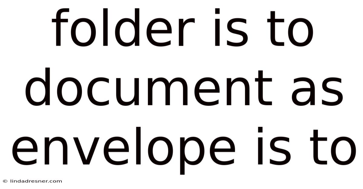 The enduring power of the "folder is to document as envelope is to letter" analogy lies in its distilled representation of a universal human need: the systematic organization and secure transmission of information. It transcends the physical-digital divide, revealing that effective information management, whether in a tangible filing cabinet or a vast cloud repository, fundamentally relies on the thoughtful design of containers that serve and safeguard their contents. This principle, emphasizing structure, protection, and efficient access, remains the bedrock upon which we build systems for knowledge, commerce, and connection. As information continues to proliferate and evolve, the core understanding of the container-content relationship will remain indispensable, guiding us towards more intuitive, secure, and productive ways to organize, protect, and transmit the vital data that shapes our world.