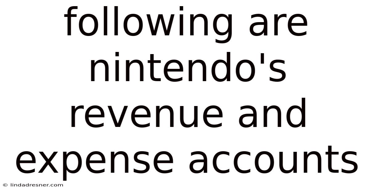 Following Are Nintendo's Revenue And Expense Accounts