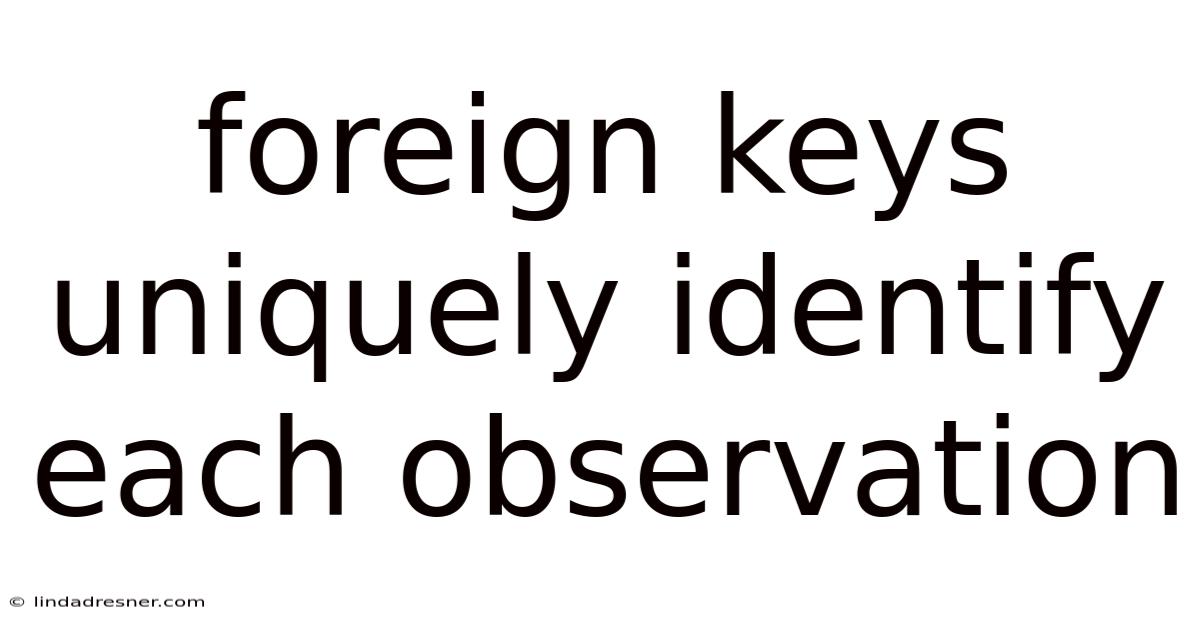 Every observation in a database must be distinct and identifiable. Foreign keys play a critical role in this. When a foreign key is used to link records between tables, it acts as a unique identifier. This uniqueness is what prevents confusion and ensures that each observation is recognized accurately.