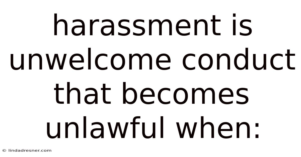 Harassment is not merely a legal liability; it is a barrier to employee well‑being, productivity, and organizational reputation. Plus, by understanding the precise legal standards—unwelcome conduct, severity or pervasiveness, and objective reasonableness—employers can better identify when behavior crosses the line into unlawful territory. On the flip side, compliance alone does not guarantee a healthy workplace.