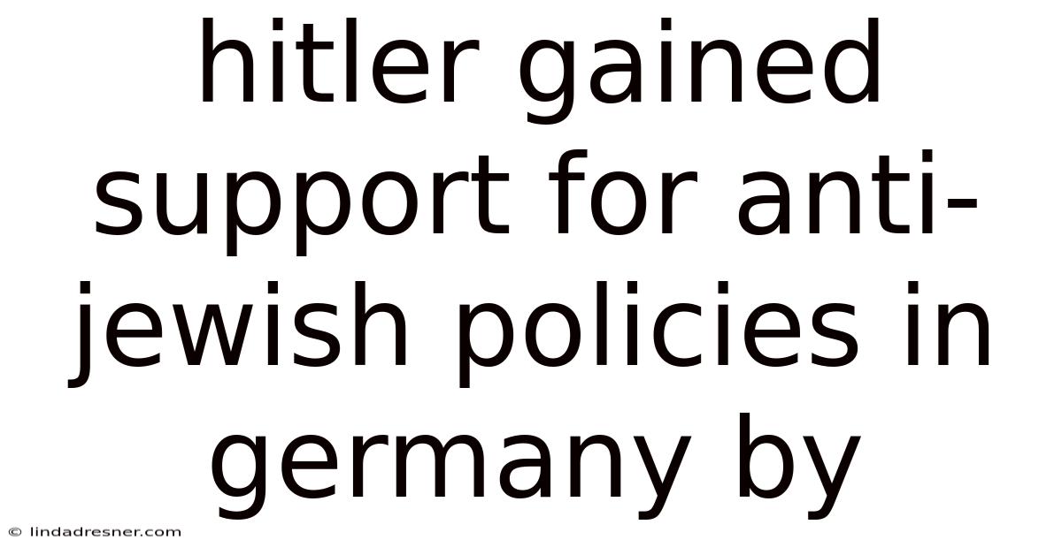 Hitler Gained Support For Anti-jewish Policies In Germany By
