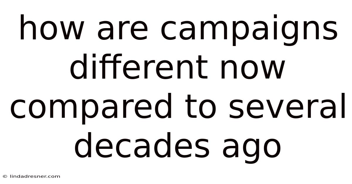 Political campaigns have undergone a dramatic transformation over the past several decades, evolving from traditional, grassroots efforts to highly sophisticated, data-driven operations. Day to day, the differences are stark, reflecting broader technological, cultural, and societal shifts. Understanding these changes is crucial for anyone interested in the mechanics of modern democracy and the ways in which candidates connect with voters Worth keeping that in mind. That alone is useful..