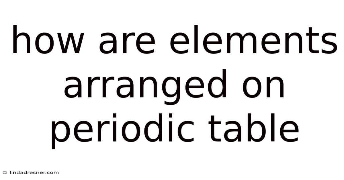 Understanding how elements are arranged on the periodic table is essential for grasping the fundamental structure of matter and the patterns that govern chemical behavior. Even so, the periodic table is more than just a list of elements; it is a powerful tool that reveals the underlying relationships between atoms and their properties. By examining the organization of elements, we can uncover the logic behind their classification and the reasons behind their interactions. This article will get into the key principles that dictate the arrangement of elements, helping you build a clearer picture of the periodic table’s design and its significance in science Still holds up..