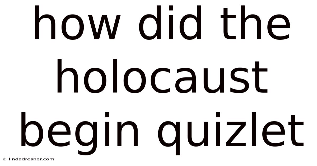 The Holocaust, one of the most horrific events in human history, began as a series of escalating anti-Semitic policies and systemic persecution under Nazi Germany. Because of that, understanding how the Holocaust began requires examining the political, social, and ideological factors that allowed such atrocities to unfold. While the term "Quizlet" might suggest a study-focused approach, the origins of the Holocaust are deeply rooted in historical events and decisions that unfolded over decades. This article explores the key stages and factors that led to the Holocaust, providing a clear and structured analysis of its beginnings.