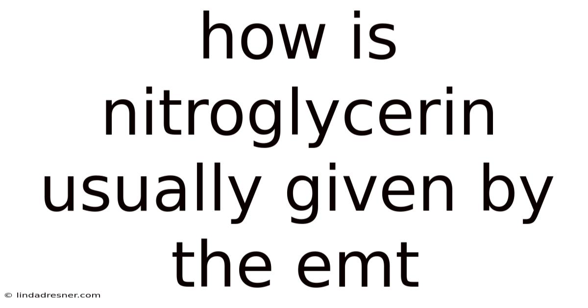 How is nitroglycerinusually given by the EMT – Emergency medical technicians (EMTs) frequently encounter patients with acute chest pain that may signal myocardial infarction or unstable angina. In the field, rapid administration of nitroglycerin can reduce cardiac workload, dilate coronary vessels, and alleviate pain, making it a cornerstone of pre‑hospital cardiac care. Understanding the standard protocol, contraindications, and monitoring requirements enables EMTs to deliver safe and effective treatment while minimizing adverse events.