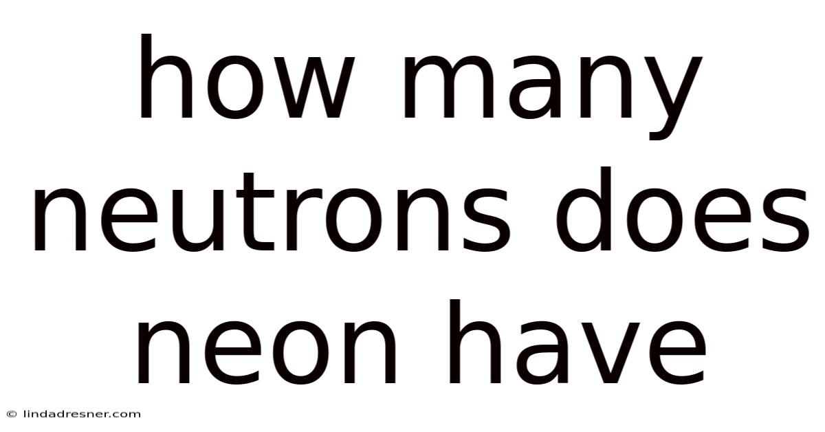 Neon is the tenth element on the periodic table, sitting in the noble‑gas family with the symbol Ne and an atomic number of 10. ** The answer depends on which isotope of neon you are examining, because neon naturally occurs as a mixture of three stable isotopes. While its bright orange‑red glow in discharge tubes makes it a favorite for signage, the question that often puzzles students and hobby chemists alike is: **how many neutrons does neon have?This article explores the neutron count for each neon isotope, explains how isotopic composition is determined, and breaks down the scientific significance of neon’s neutron numbers in fields ranging from astrophysics to industrial applications Small thing, real impact. Less friction, more output..