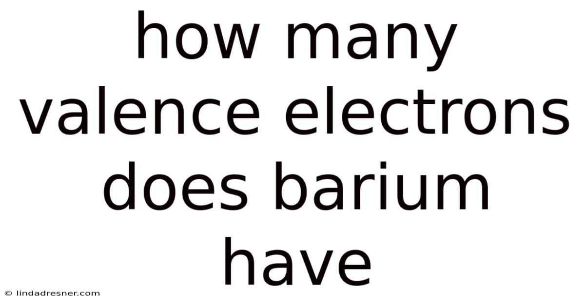 Barium has exactly two valence electrons, a fundamental characteristic that dictates its chemical behavior, reactivity, and placement within the periodic table. Here's the thing — understanding how many valence electrons does barium have provides a clear window into why this alkaline earth metal readily forms positive ions, participates in ionic bonding, and plays essential roles in both industrial applications and everyday chemistry. By exploring its electron configuration, periodic group trends, and the underlying quantum principles, you will gain a complete picture of how barium interacts with other elements and why its outermost electrons are so crucial to its identity Still holds up..