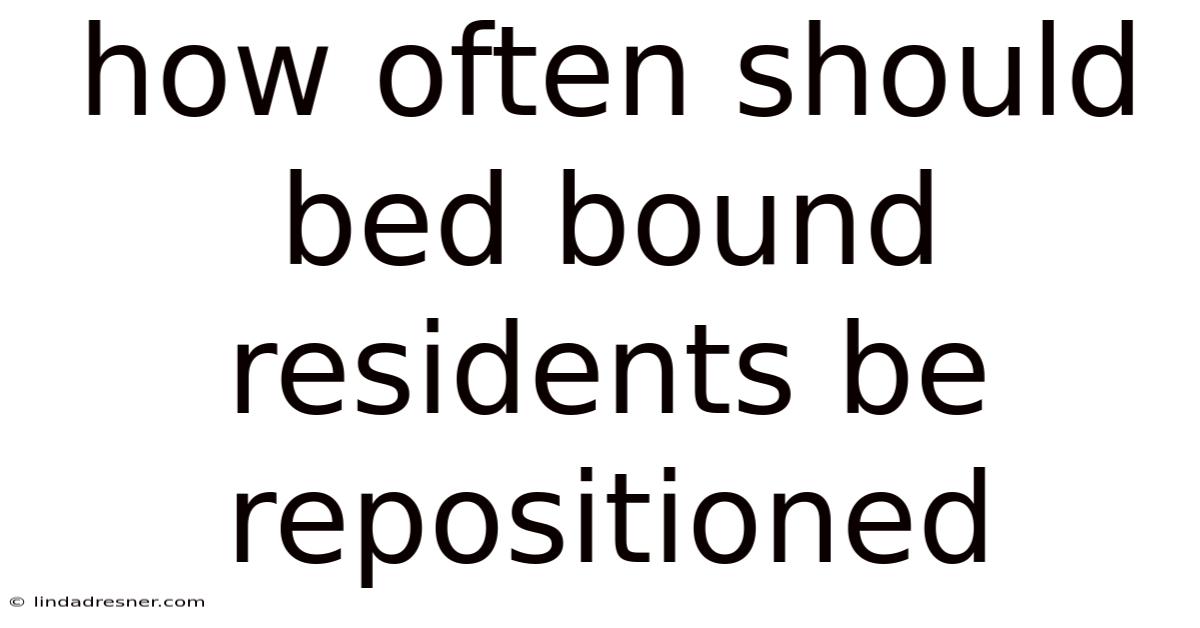 The frequency of repositioning for bed-bound residents is not a one-size-fits-all decision. While the 2-hour guideline remains a solid baseline for most high-risk individuals, adjustments based on skin status, medical condition, and support surfaces can optimize outcomes. By establishing a consistent turning schedule, preparing adequately, and monitoring skin integrity, caregivers can dramatically reduce the risk of pressure ulcers and enhance the dignity and comfort of those under their care. Remember, each reposition is an opportunity to connect, reassure, and affirm the resident's well-being—an essential part of compassionate, evidence-driven care. At the end of the day, proactive and personalized repositioning strategies are vital for promoting the health, safety, and overall quality of life for individuals requiring prolonged bed rest. Consistent attention to these details fosters a supportive environment and empowers caregivers to provide truly holistic and person-centered care Simple as that..