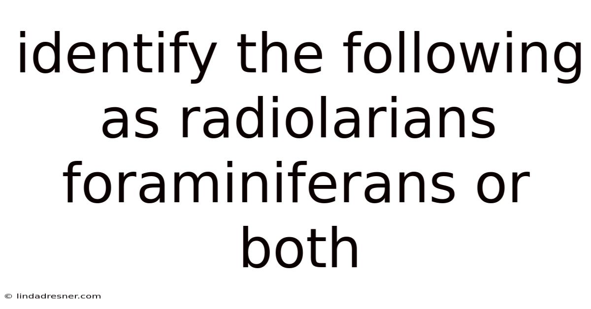 The microscopic world teems with diverse life forms, none more nuanced or historically significant than the radiolarians and foraminiferans. Which means these unicellular protists, though often confused, possess distinct characteristics that define their unique biological niches and fossil records. Radiolarians are renowned for their exquisitely complex silica (glass) skeletons, while foraminiferans build shells, or tests, primarily from calcium carbonate (calcite or aragonite). Here's the thing — correctly identifying a specimen – whether it's a radiolarian, a foraminiferan, or even a rare example exhibiting features of both – is essential for accurate scientific study, ecological assessment, and interpreting the geological past. This article will equip you with the knowledge to figure out this microscopic distinction But it adds up..