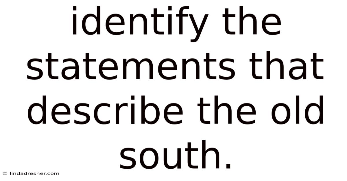 Identify the statements that describe the old south – this phrase serves as the gateway to understanding a distinct era in American history. The “Old South” refers to the pre‑Civil War period of the Southern United States, a time marked by a unique blend of economic reliance on agriculture, a rigid social hierarchy, and a cultural identity that still influences regional perceptions today. Recognizing the key statements that capture this period helps students, researchers, and curious readers separate myth from reality and appreciate the complexities of the era.